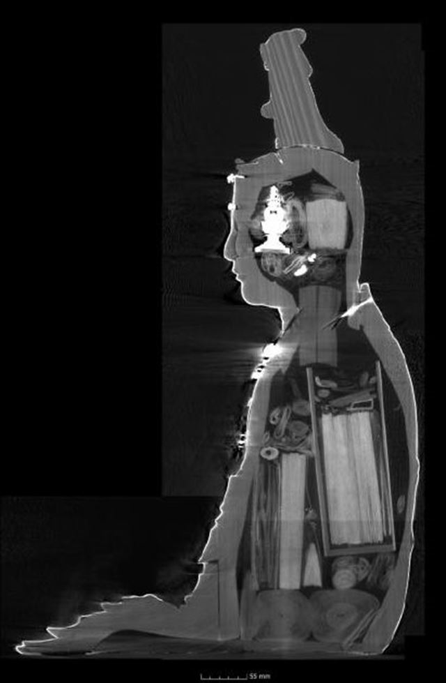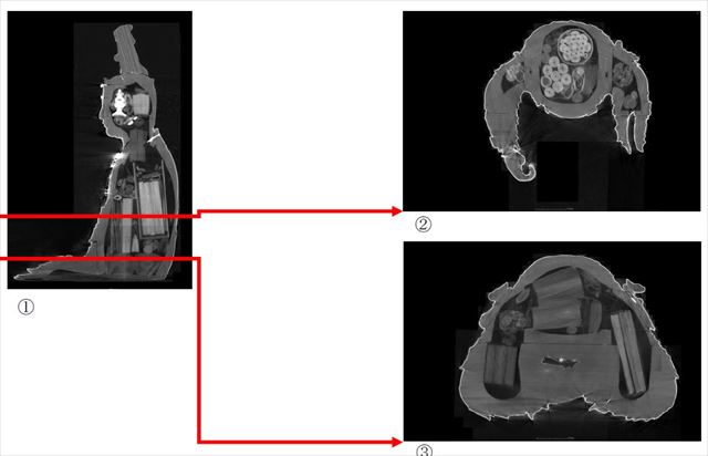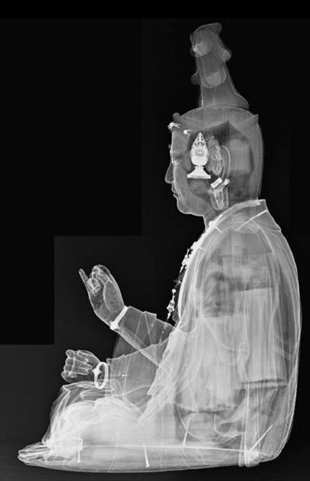 垂直断層画像。高さ73cmの坐像の仲には、金属製の容器や巻物などが…!