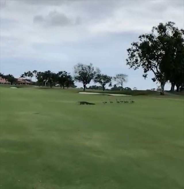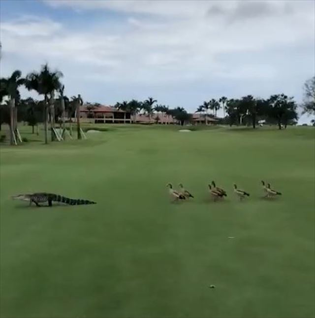 ゴルフ場にワニが出現!そして、その後ろをついていくガチョウたち… 珍しい光景が撮影された動画をご紹介します!
