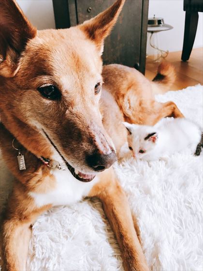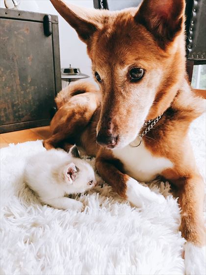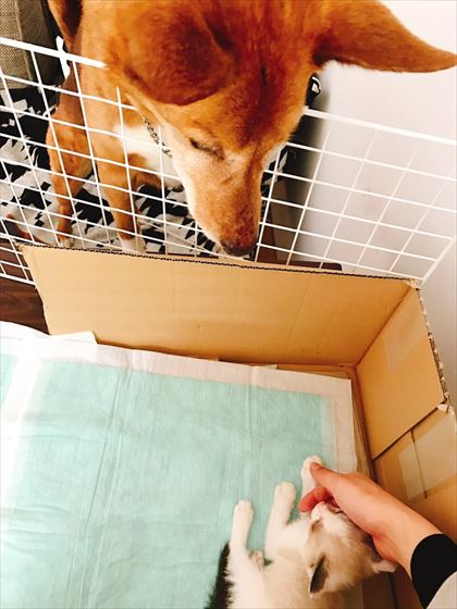 道で倒れてた仔猫を保護した方から、仔猫を引き取りました。一番喜んでいるのは犬です。犬が物凄く浮かれています。