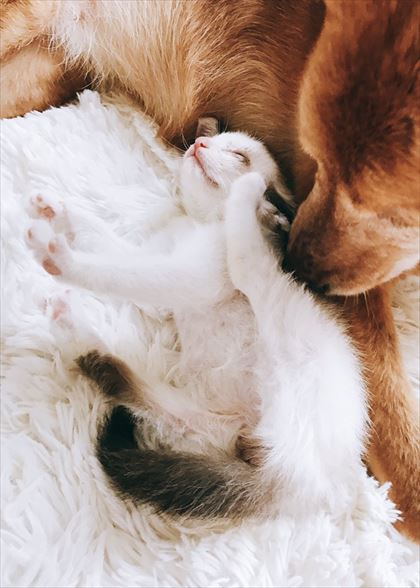 安心した様子で眠っている、この可愛い姿。そんな子猫ちゃんが家族として来てくれたことを誰よりも喜んでいた子がいました。