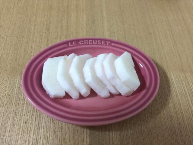こちらは、スライサーで薄切りにして2日間漬けました。