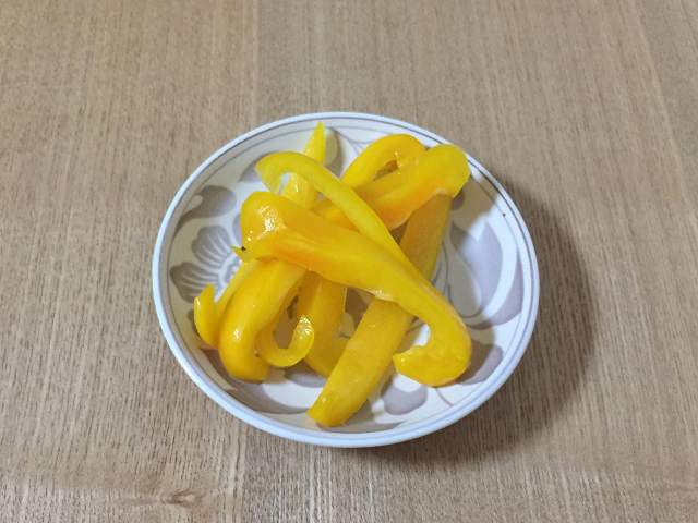 皮をむいて、ワタを取り、1cm幅に切って、2日間漬けました。
