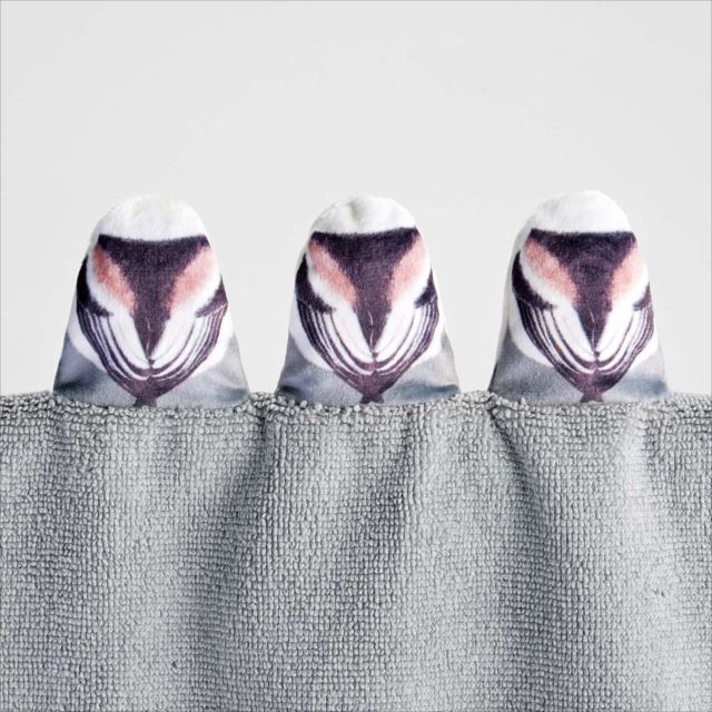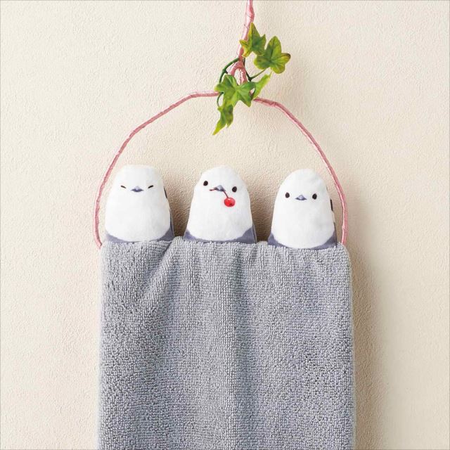 いえいえ、こちらはフェリシモの新商品『ちょこんっと小鳥がとまるフェイスタオルの会』。その名の通りタオルを干したり掛けたりすると、小鳥さんたちがとまっているかのように見えるデザインになっているんです。