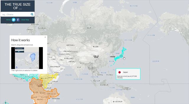 世界地図を見渡すと約200もの国がひしめき合っています。遠く離れた国の大きさを比べることは難しいですが、「The True Size Of …」であれば簡単に比較できますね!ぜひお試しください!