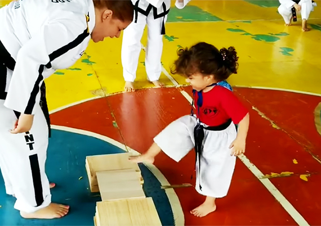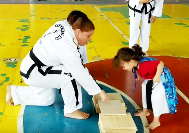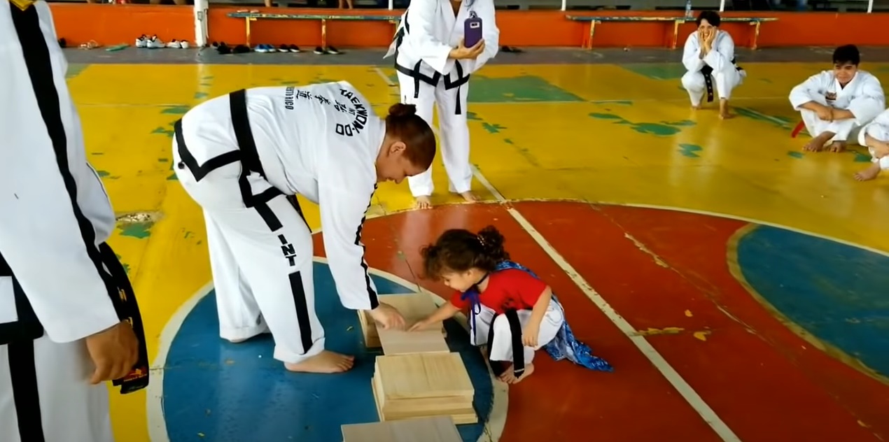 次に板割りに挑戦するのは、ちいさな女の子。先生と女の子が四苦八苦しながら最後に繰り出す技に思わず微笑んでしまうと話題になっているので、ご紹介します。