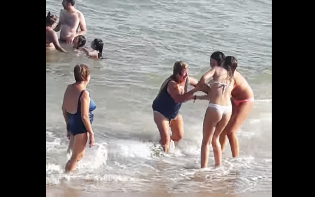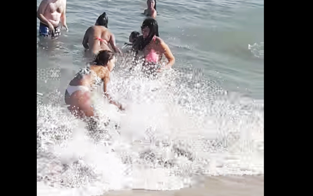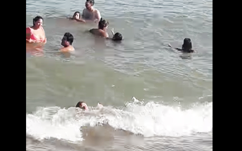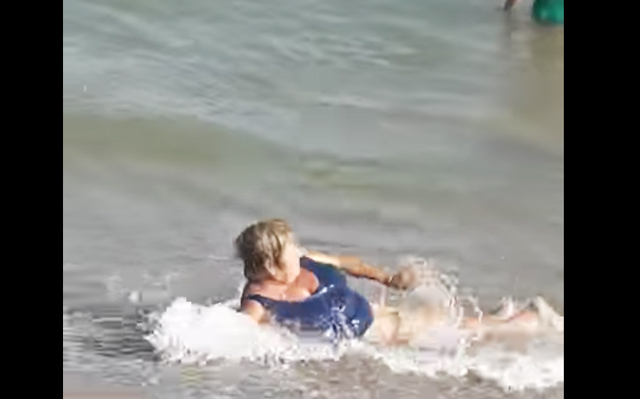 危ない!浅瀬で海水浴を楽しむお婆ちゃん…少しの油断から危険な状況に!
