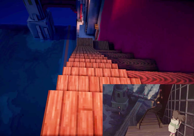 あまりのクオリティの高さで、まるで自分が映画の中の主人公になった気分になってきますね。マインクラフトでここまで綿密に再現するほは、高いテクニックが必要なようです。このあともたくさんの名場面を思い出させる千と千尋の世界が再現されています。ぜひ続きも動画でもご覧ください!