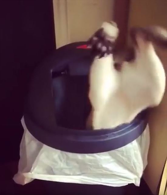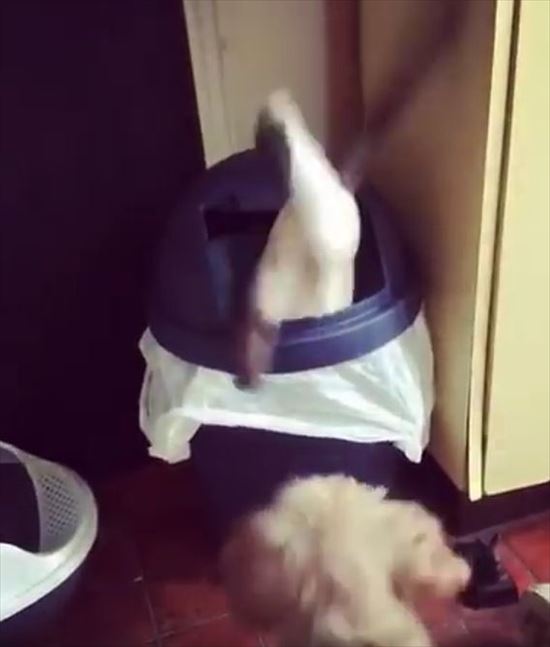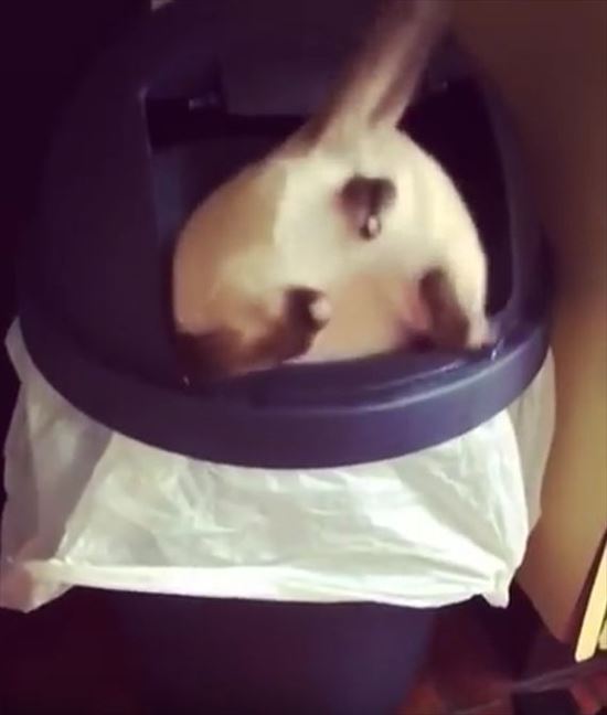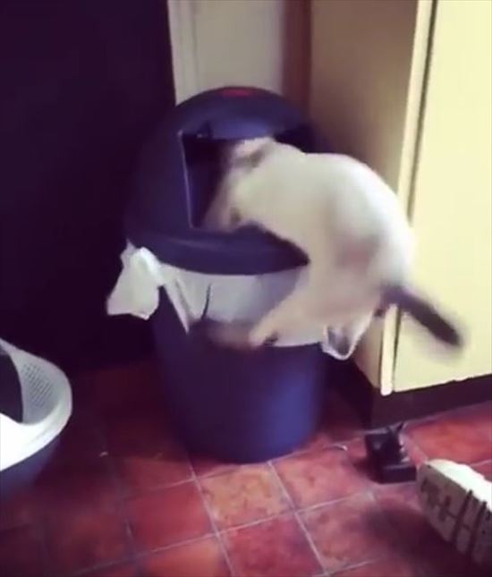 ゴミ箱に頭から突っ込んで抜けなくなったニャンコ… 懸命に脱出を試みますが、なかなか抜け出すことができません。そんな一部始終を撮影した動画をご紹介します!