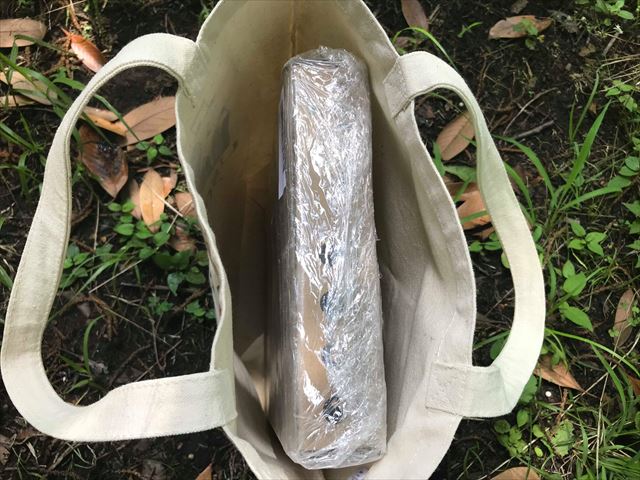 そして女性の私でも片手で持てるぐらいの重さなので、持ち運びはめちゃくちゃ楽ですね。このように縦長のトートバッグにすっぽりと入ります。