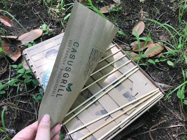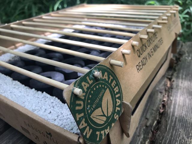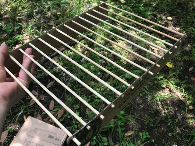 あとは竹の網を上から本体のホルダーに差し込めば、使い捨てグリルの完成!