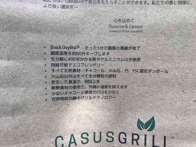 そしてFSC(森林管理協議会)に認定された環境にやさしいダンボールに、チャコール(竹炭)、火山石、竹もあり、すべて天然素材であることが書かれていますね。
