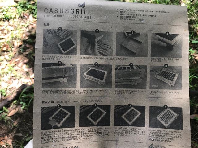 ひとりバーベキュー成功なるかドキドキしながら、ダンボール箱を包むプラスチックのフィルムを剥がしてみると、一番上にはペラペラな紙が1枚。