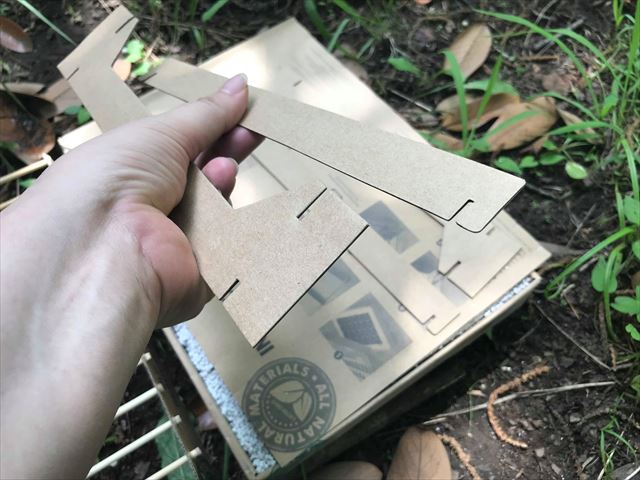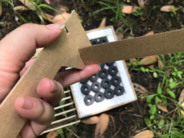 まぁでも、ダンボールでできたグリルなので、柔らかくすぐに曲がってしまうのが難点。そして全体的に切り込みに差し込んでいるだけなので、外れやすくちょっぴり安定感が心配になりますね。