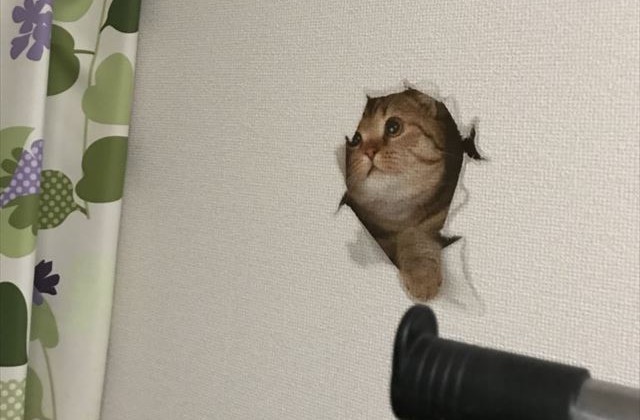 帰宅したら猫が壁突き破ってた。 pic.twitter.com/ELSuwc3NCy