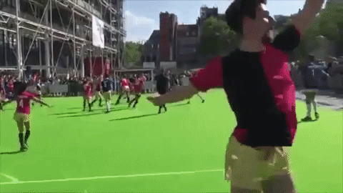 ボールを受け取ったキーパー。ボールをすぐには蹴らず、腰を振る方に集中…!!早くボールを蹴ってください!と言ってしまいたくなりますが、ほかの方々もダンスに夢中ですね…。