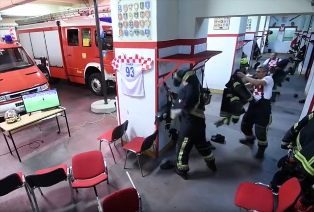 ワールドカップで破竹の勢いで勝ち進むクロアチア。初の決勝戦進出を決め、後はフランスとの戦いで勝てばW杯初優勝が決まるところまできています。クロアチアの国中が興奮のるつぼと化す中、消防士たちももちろんW杯に釘付け。