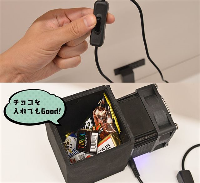 今までありそうでなかった紙パック専用の冷却器は使い方もカンタン。電源をつないでスイッチを入れるだけです。