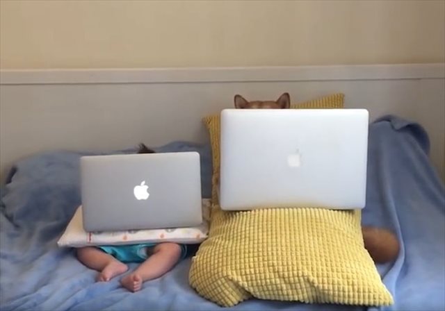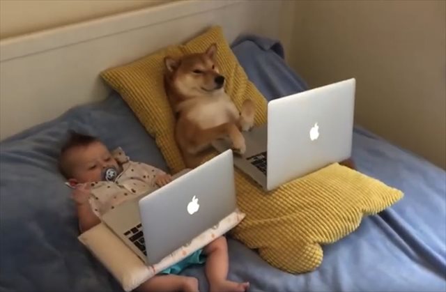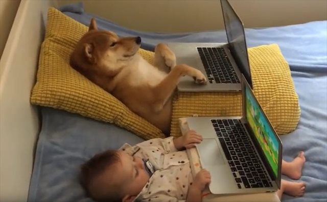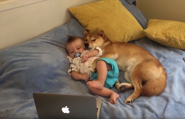 ベッドで映画を観たり抱き合ったりする、仲良しの赤ちゃんとワンコ。その様子を撮影した動画が微笑ましいと話題になっています!