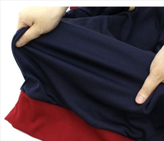 精度の高い国内縫製なので美しいシルエットが楽しめるほか、伸縮性に優れたジャージ素材を使用しているため、快適な着心地です。