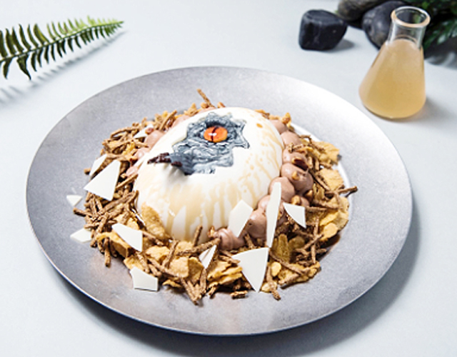 見た目のインパクトにちょっとドキドキするダイナソーエッグケーキ。ビジュアルとギャップのある爽やかなレモン味。※各日数量限定(¥1,390)