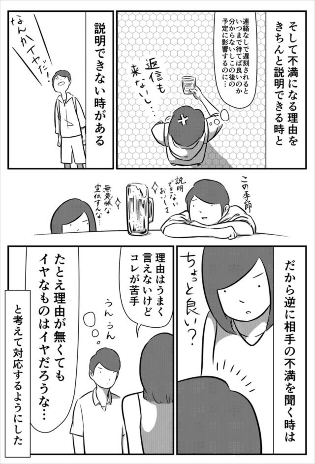 ちゃんと説明できる『理由』がないと、不満を言ってはいけない訳じゃないですもんね。こういうスタンスで受け止めてくれたらすごくラクだな…。私も見習おう、うん。