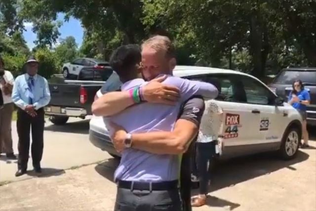 娘の心臓で助かったジャックさんを見て、コナーさんは包み込むようにハグをしました。