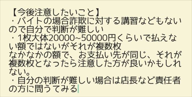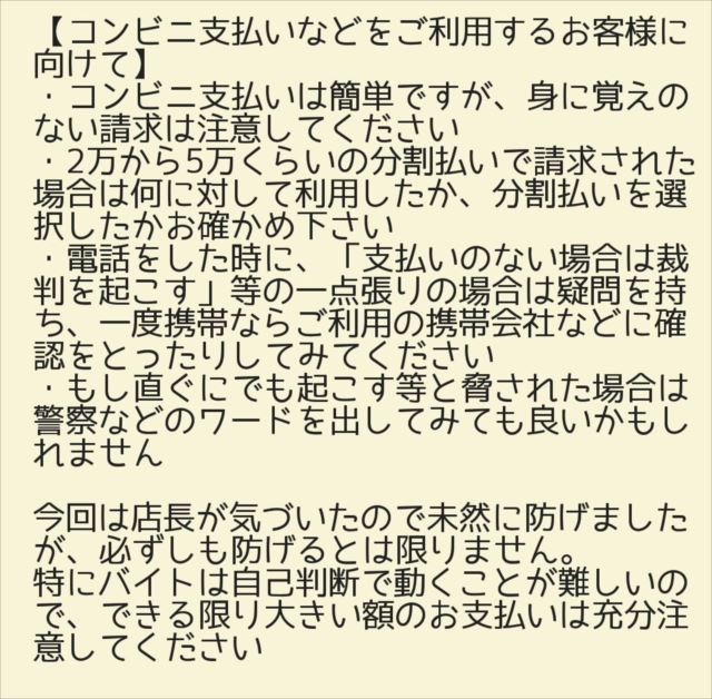 自分はバイト故、詐欺の講習等も受けたことが無い為店長がいなければ大変な事になっていました。