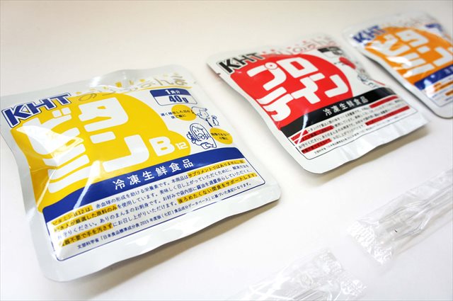 もう見た目はサプリメントにしか見えませんよね!?ところが袋を開けると出てくるのはまぐろや、サーモン、甘エビ…。醤油をたらして、付属のフォークで食べられます。