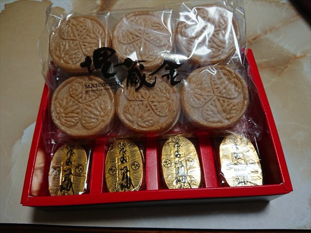 「円くお納めください」という文言が目に飛び込んできます。佐渡金山のいかにも金山らしいお土産ですね。