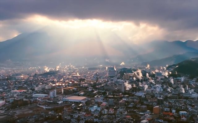 厳島神社や温泉街の絶景などの狭間で、日本の伝統文化も随時登場。美しく、格式高い雰囲気が感じられる映像です。
