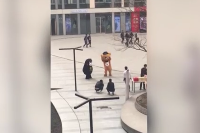 出典:YouTube(Bear mascot loses his head at photoshoot | Metro.co.uk)