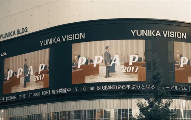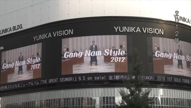 その後は、近年世界的なヒットを飛ばした「PSY / 江南スタイル」や「ピコ太郎 / PPAP」を改めて紹介。西武新宿駅PePe前広場にいる人たちもビジョンに流れる映像にくぎ付けです。
