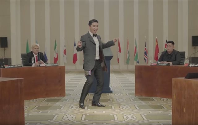 PVは、V.Iが各国の首脳に「世界はダンス干ばつに陥っている」と呼びかけるシーンから始まります。