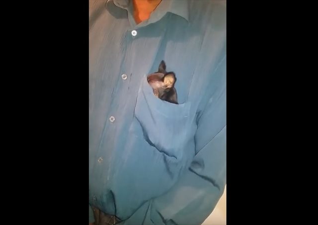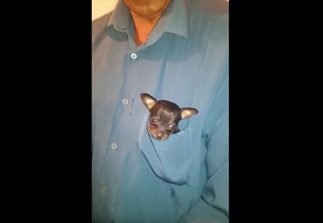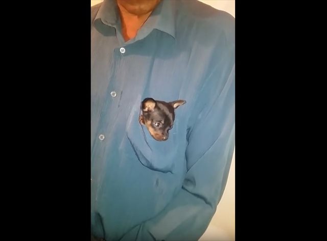 ちょうどいい大きさ!?胸ポケットにおさまった子犬を撮影した、とっても可愛らしい動画をご紹介します!