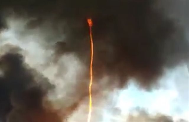 竜巻を起こしながら燃え上がる炎… 恐ろしすぎます…。