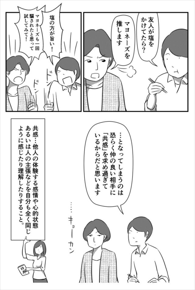 確かに友人の選択にイライラする時って、自分の価値観に対する「共感」を求め過ぎてるのかもしれませんね。