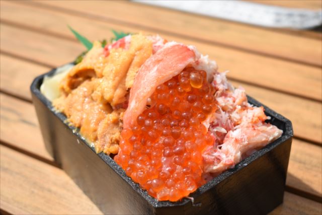 筆者が実食し、そのウニの甘さに絶句した海の里の三色弁当、