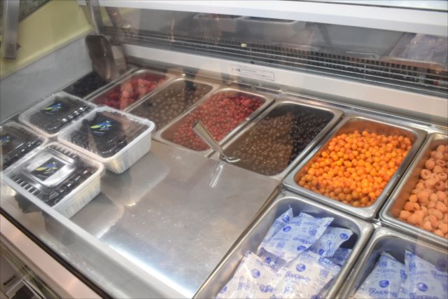 ショーケースに入った、たくさんのベリーを使ったスムージーは、美味しいだけじゃなくて美容にも良さそう!