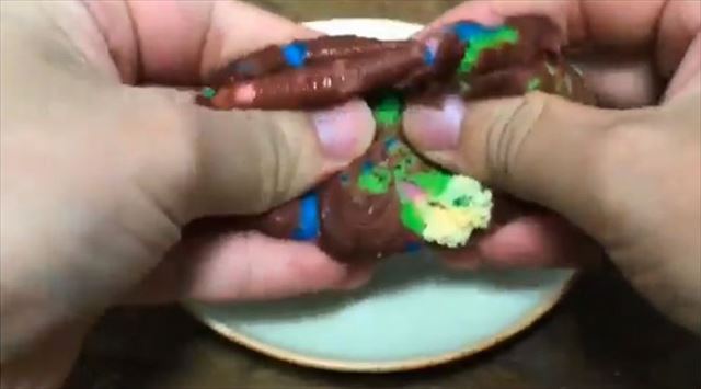 「このチョコパイ、こねると粘土になるぞ!」いやいや食べ物を粗末にしちゃ…えっフェイク!?