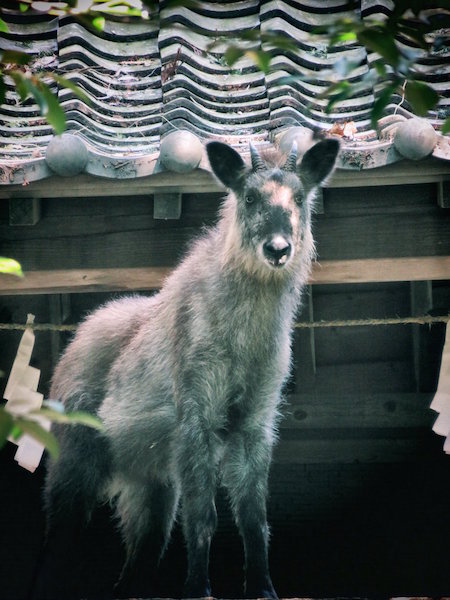ふと見かけた神社でカモシカに遭遇し、こんな素敵な写真が撮れるなんてすごい!