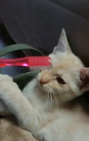 「猫は歯ブラシでなでなでされると、母猫に舐められているような感覚になり落ち着く」