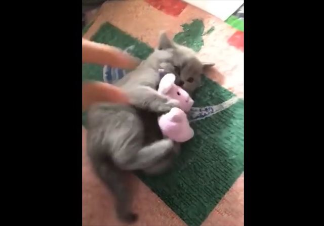 お気に入りのぬいぐるみを、意地でもはなさない子猫が微笑ましいと話題になっているのでご紹介します!