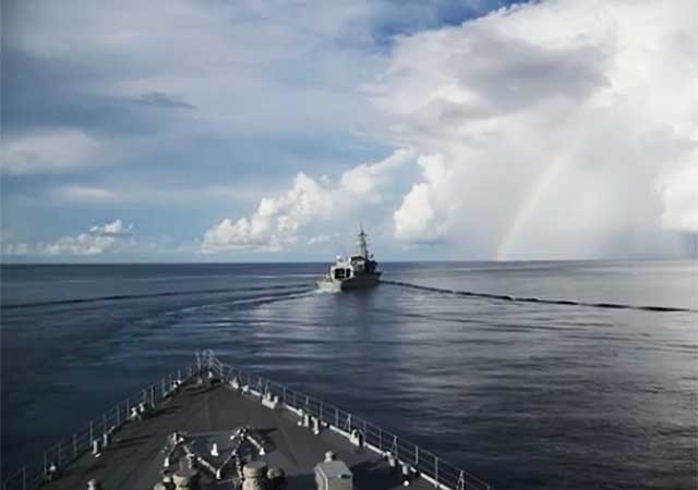 練習艦隊は、通常の厳しい訓練からは想像もつかない美しいシーンにゆっくりとナビゲートしてくれます。