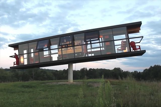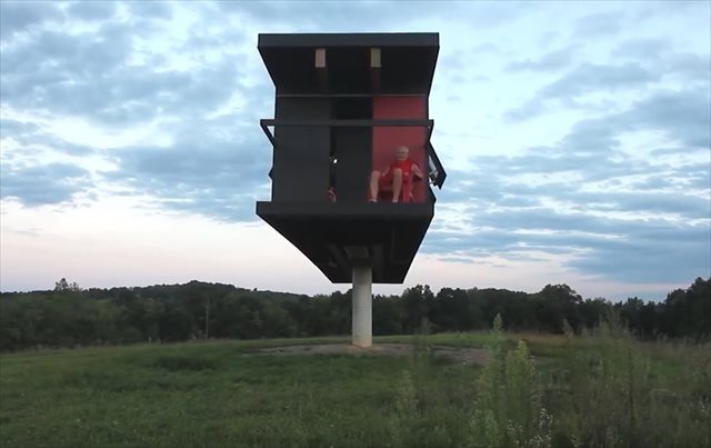 米・ニューヨーク州北部の屋外彫刻公園に実験的に建てられたというシーソーハウス。コンクリート柱の高さは14フィートで、住居内の動きや風の具合により、ゆっくりと傾いたり回転したりするそうです。