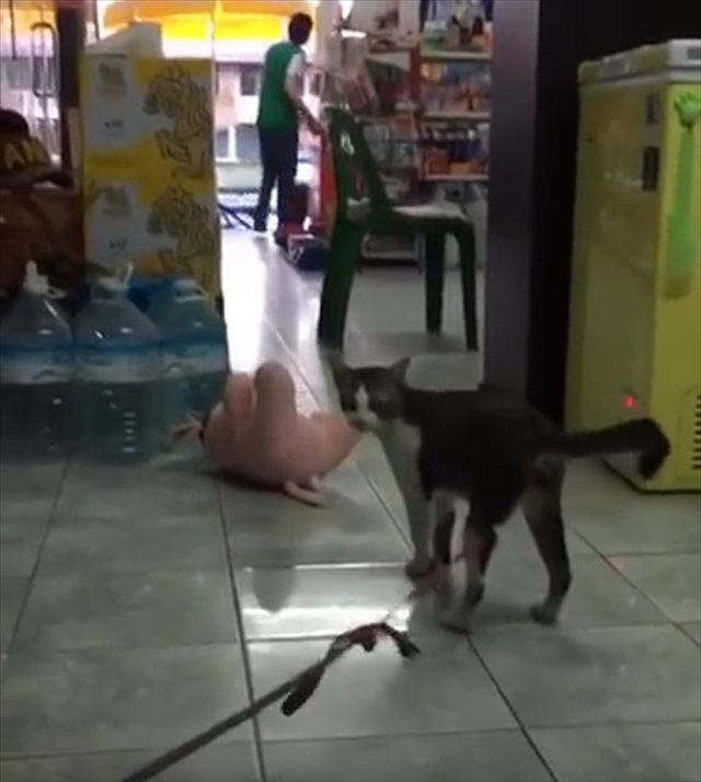 ニャンコの目にもとまらぬ大技がぬいぐるみに炸裂!その決定的瞬間を撮影した動画をご紹介します!