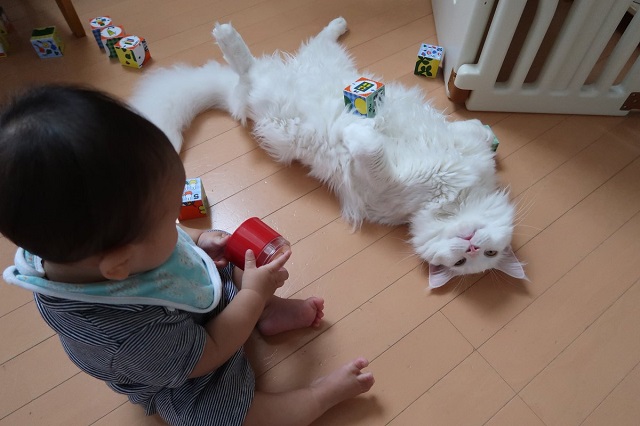 いい遊び相手になってくれてるなーって感じだけど、ちょっとトヨちゃん心が広すぎるわw#2018feb_baby pic.twitter.com/ZpgAygAu5Q