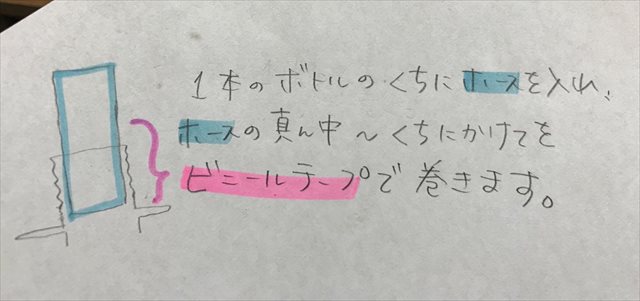 ①ボトルとボトルをホースでジョイントすると漏れない。