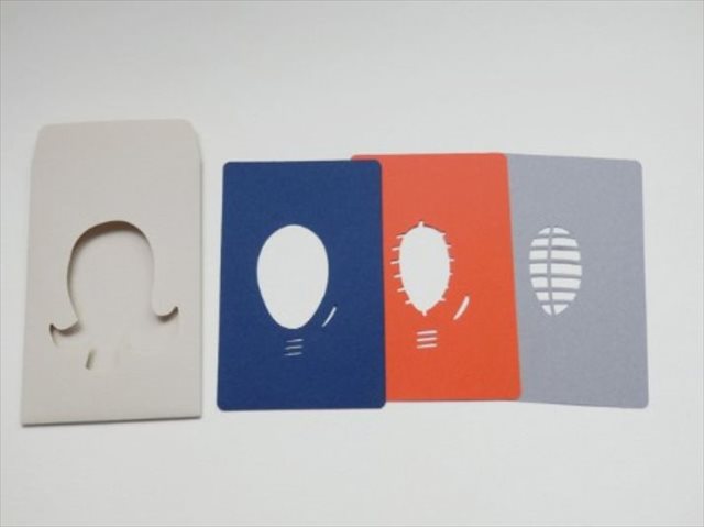 こちらは、色紙を切り抜いてデザインを表現した切り絵のぽち袋。色紙にメッセージを書くこともできます。色紙は紺、赤、グレーの3種類を重ねる形式。