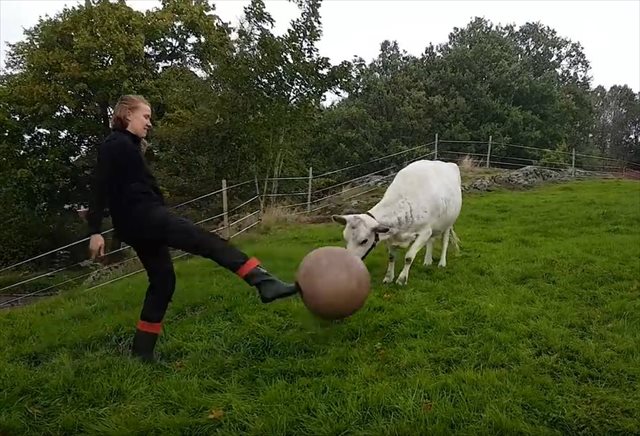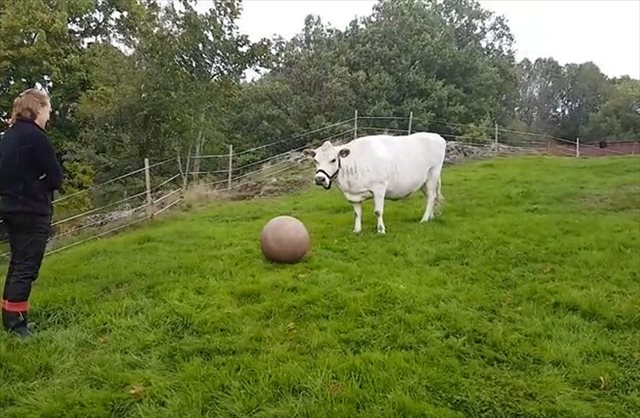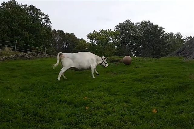 大きな体を揺らしながら、ボール遊びではしゃぎまくる牛。その一部始終を撮影した動画をご紹介します!
