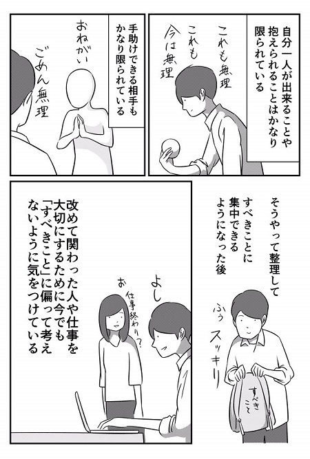 そんな中、さわぐち けいすけ(@tricolorebicol1)さんがTwitterに投稿した漫画が、「するべきこと」でいっぱいの思考を転換し、整理するためのアドバイスをくれました。